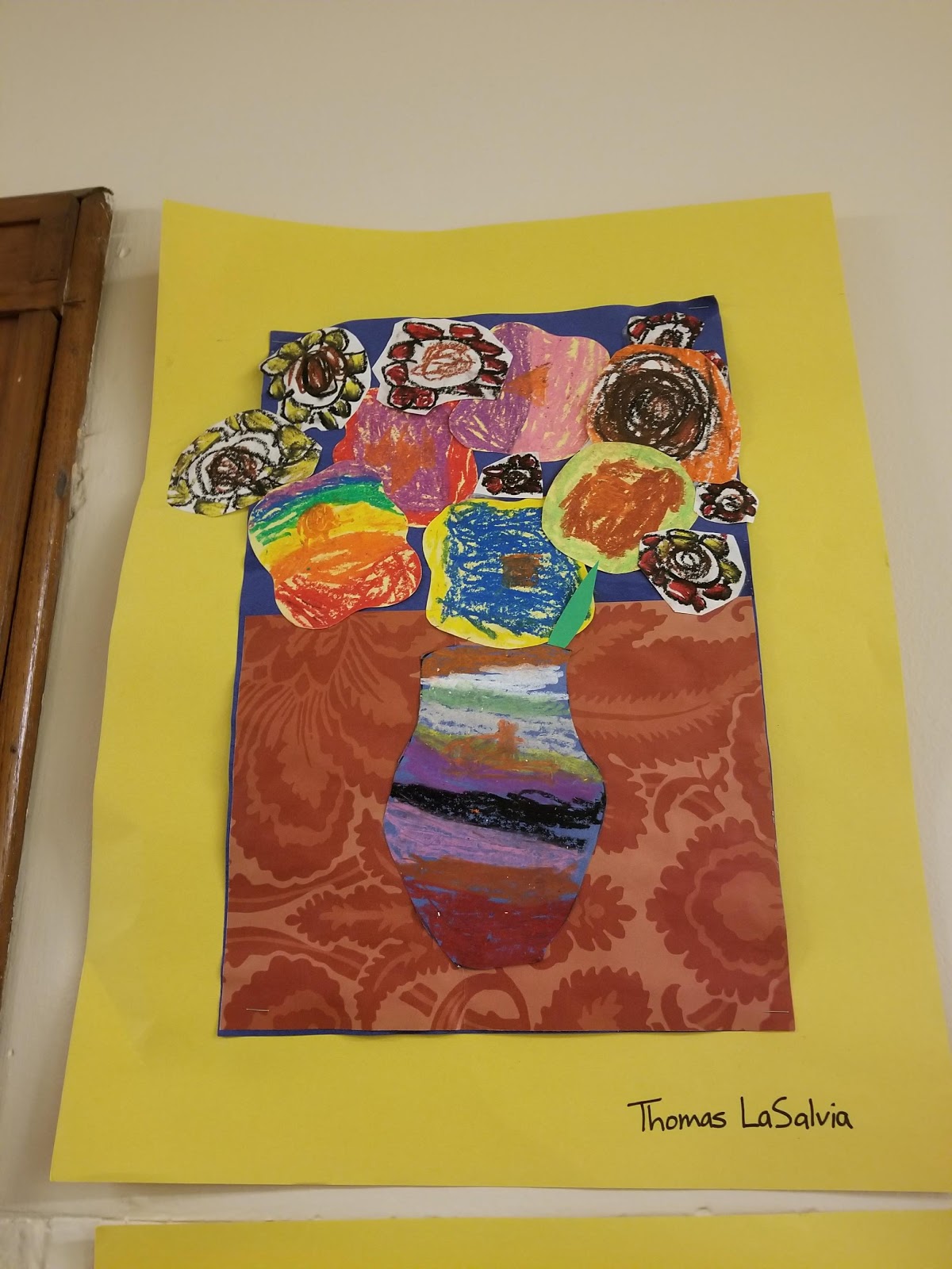 And for the art fair in art class, Thomas made a beautiful picture of flowers and a bird!